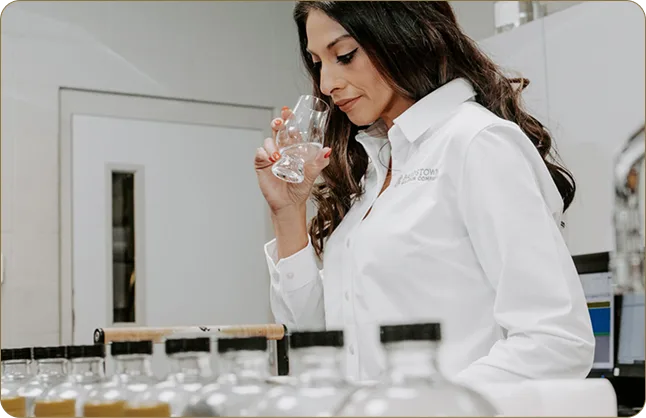 We receive your bulk spirits (or blend them on-site). Samples are extracted immediately and tested in our in-house lab for ABV, obscuration, and sensory profile match to ensure consistency before production begins.